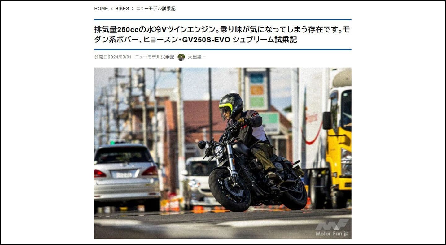 GV125S, GV300Sもインプレ経験のあるアイキョウさんが、250Vツインの走りの魅力を一般道&高速道で試乗レポート。