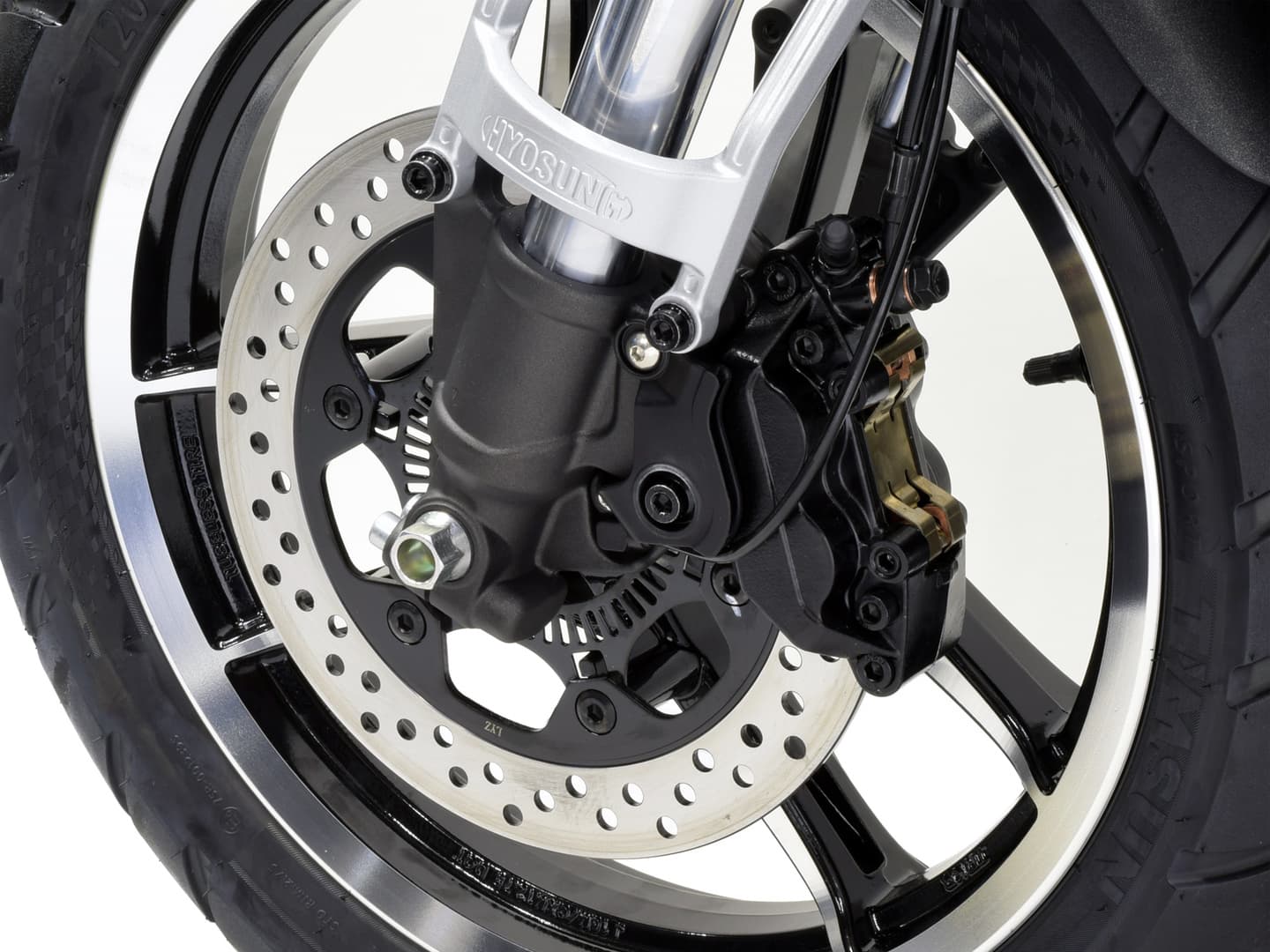 高級感が漂う切削加工がされたキャストホイールは、フロント16インチ、リア15インチの組合せ。