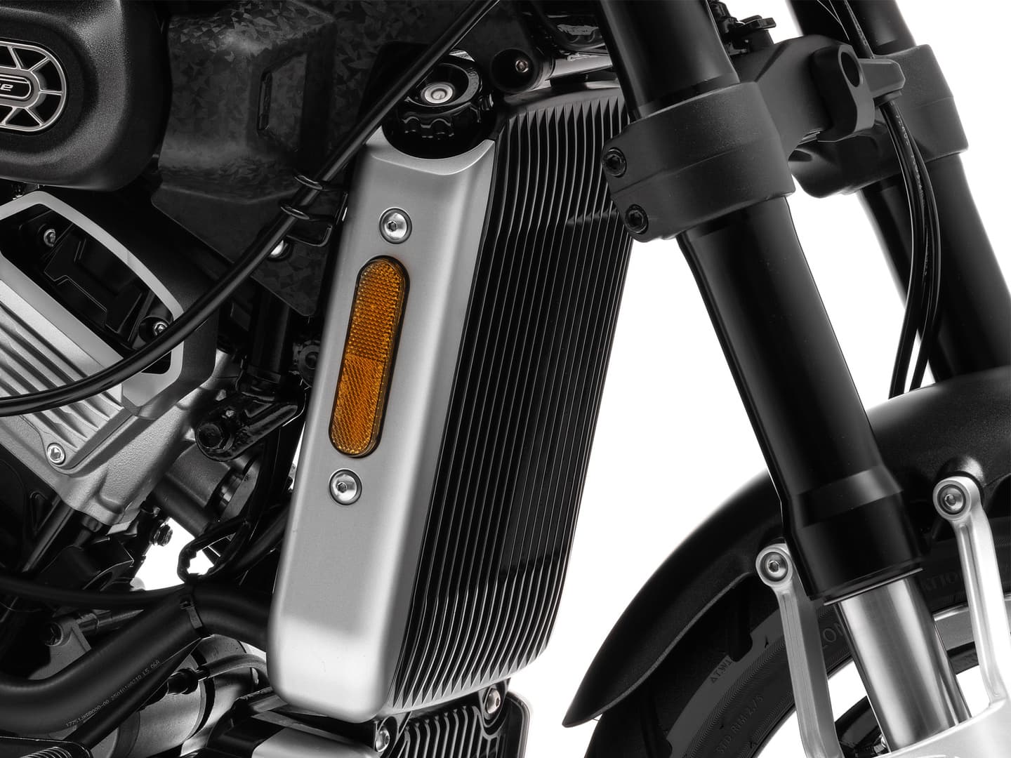 ラジエターは、メインフレーム上部からのエンジンハンガーにマウントされています。