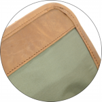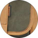 ブラウン(BRO)とKHA(カーキ)の各部ベルトや底のマチ部には、本物志向のオイル仕上げエイジドレザーを使用しています。ベース素材のワックスコットンと調和して一層風合いを引き立ています。