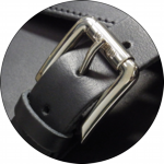 ブラック(BLA)ヘリテージの各部ベルトや底のマチ部には、強度と適度な油分をもった良質のカウハイドレザー(牝牛皮革)に表面を艶のあるブラック仕上げした本革を使用しています。たいへん丈夫で、耐候性にも備えており、日常の簡単なお手入れだけで質感を保つことができます。