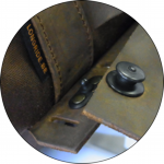 ● ファスナーやバックルなどのスモールパーツにも高品質品を使用しています。サドルバッグとマウンティングマット(わたりベルト)をつなぐ留め具には、船舶用で有名な信頼のドイツLOXXのワンタッチボタンファスナーを採用しています。