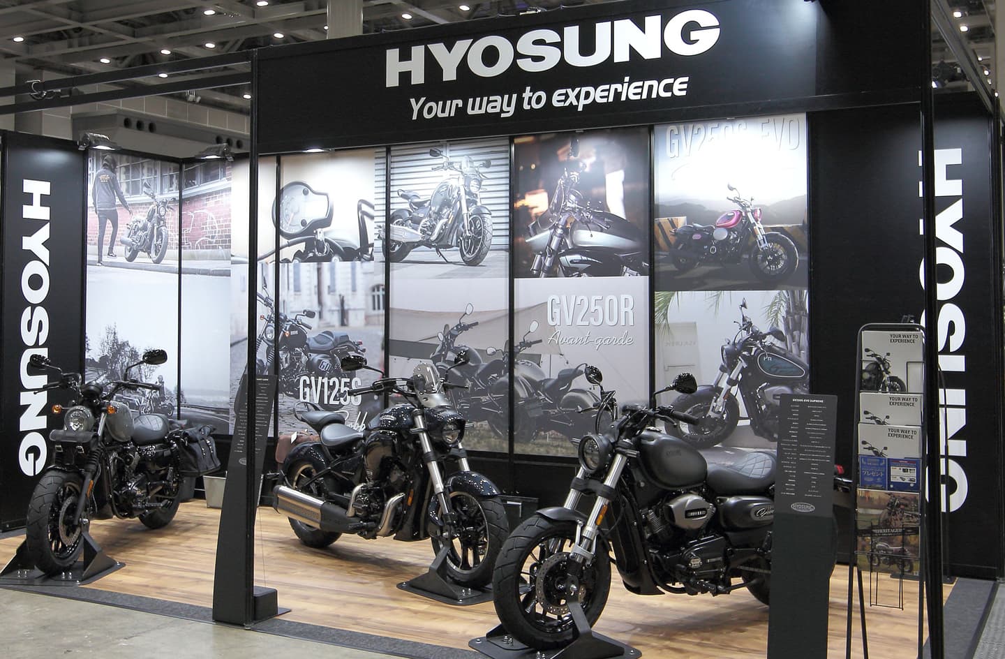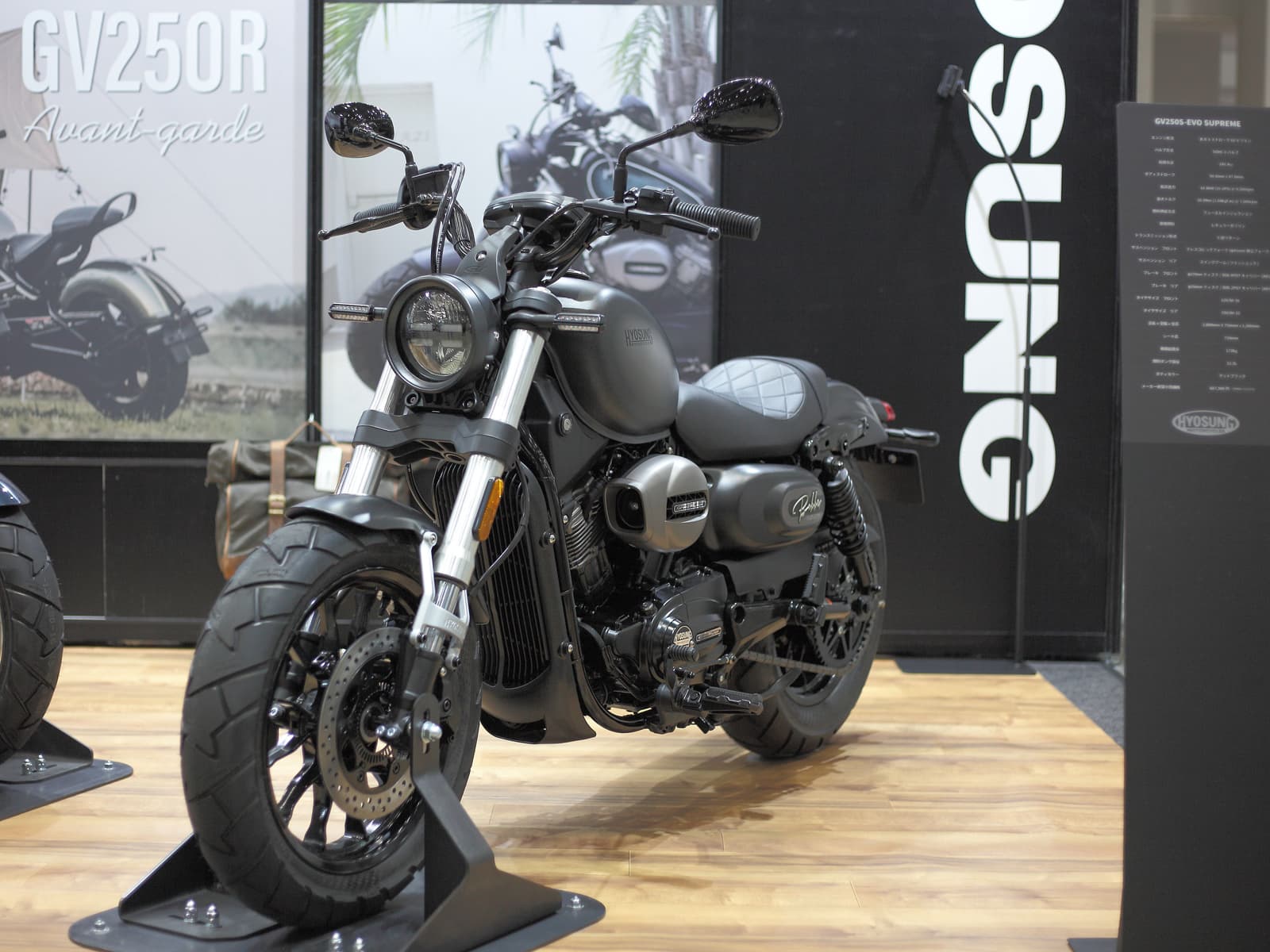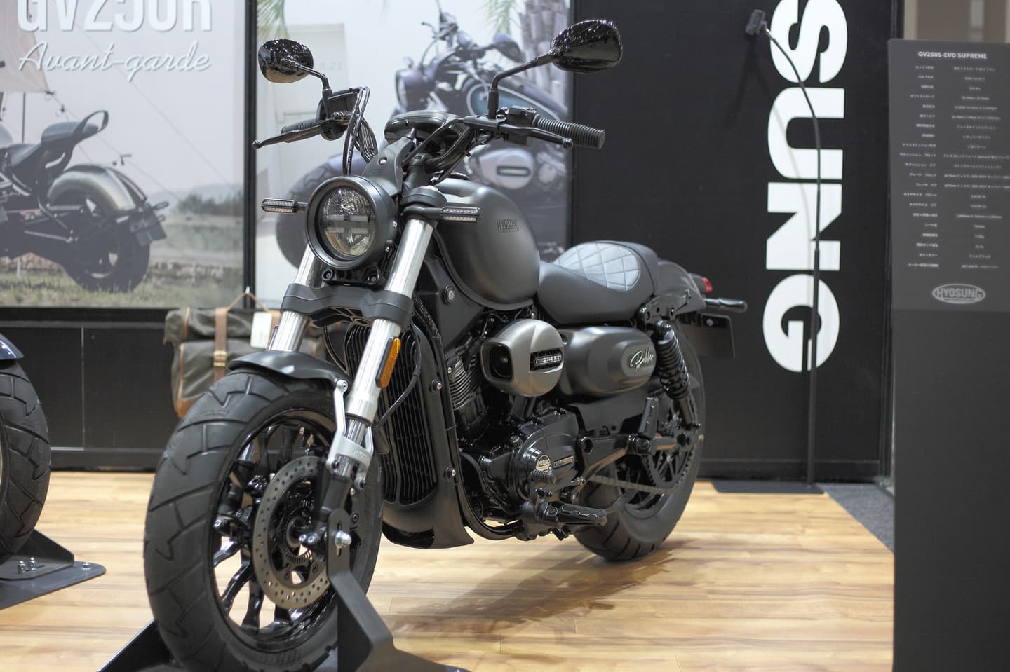 TOKYO MOTORCYCLE SHOW 2024 HYOSUNGブース GV250R Avant-garde New GV250R Avant-garde マグネタイトブルー GV250R Avant-garde New GV250R Avant-garde マグネタイトブルー GV250S-EVO Supreme New GV250S-EVO Supreme マットブラック GV250S-EVO Supreme New GV250S-EVO Supreme マットブラック GV125S Bobber GV125S Bobber ウルフグレー GV125S Bobber GV125S Bobber ウルフグレー SCENE 写 真 HYOSUNG STREET CRUISER 250 HYOSUNG BOBBER 125 & 300 Cruising クルージング Country road カントリーロード Dirt ダート Field 田園 Night ナイト Garage ガレージ After the rain 雨上がり Street ストリート