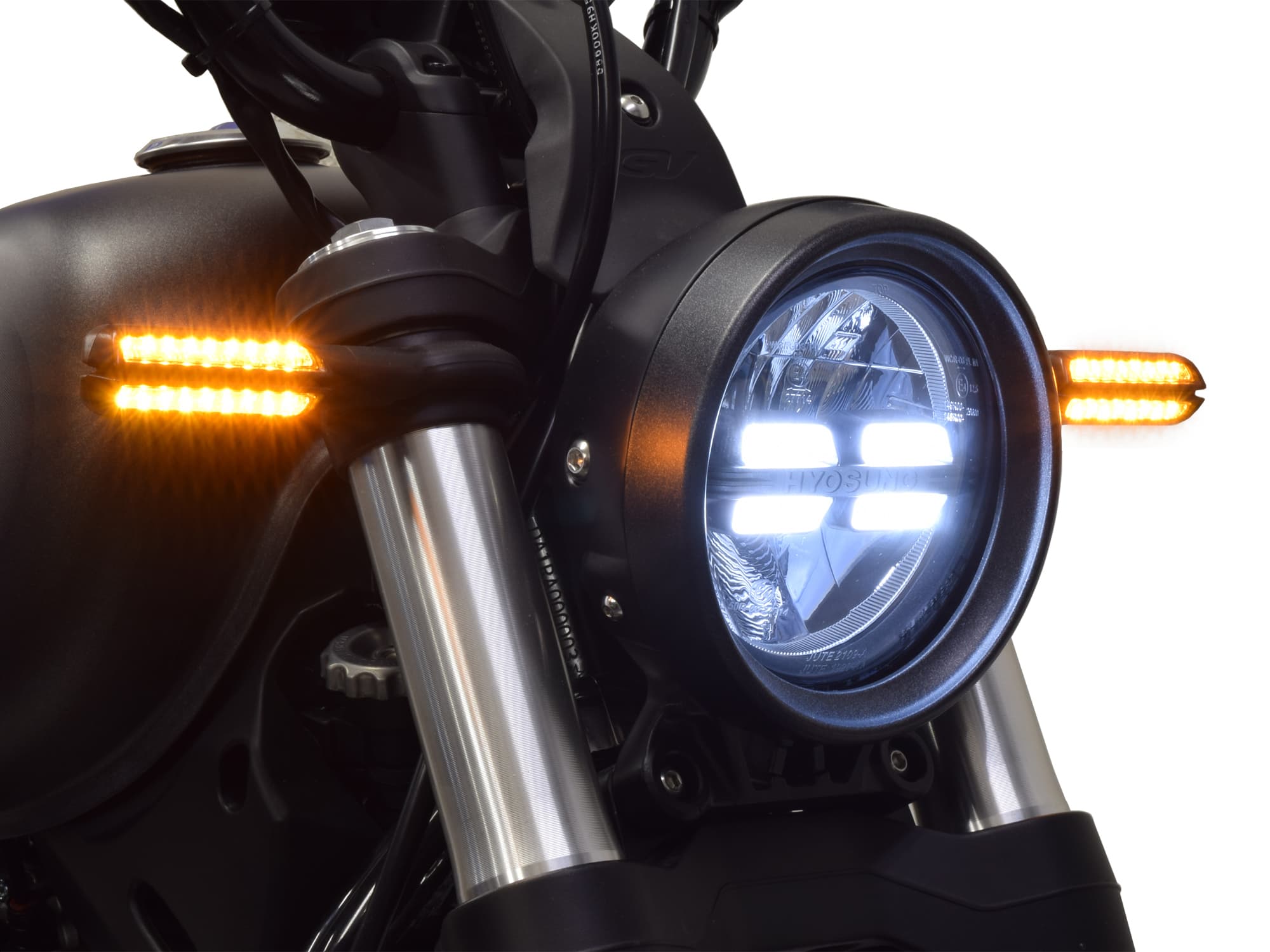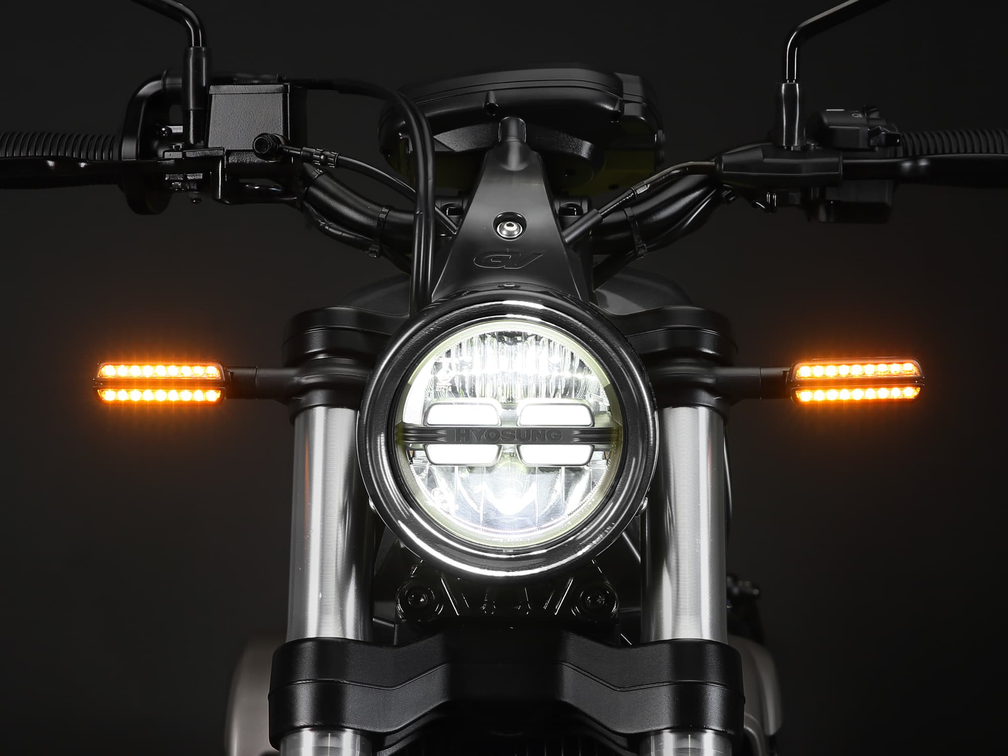 特徴的LEDヘッドランプとシーケンシャルタイプのLEDウインカーも精悍なフロントフェイスを演出しています。