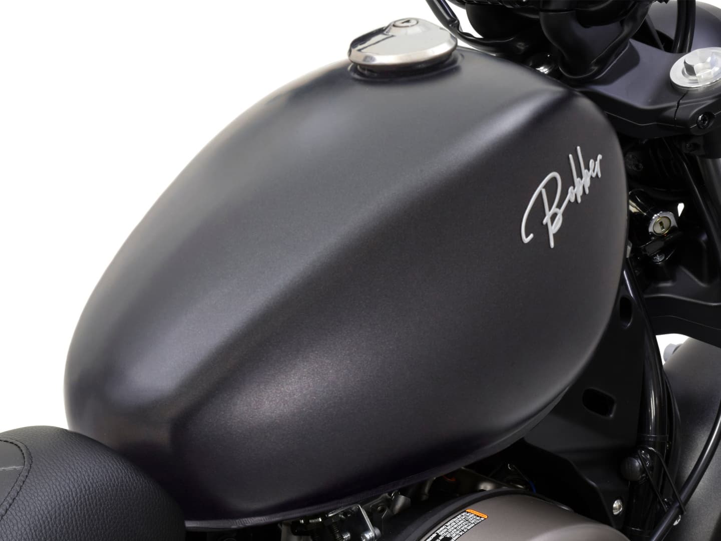 両サイドに配した”Bobber”の3Dエンブレム、高い質感を漂わせています。