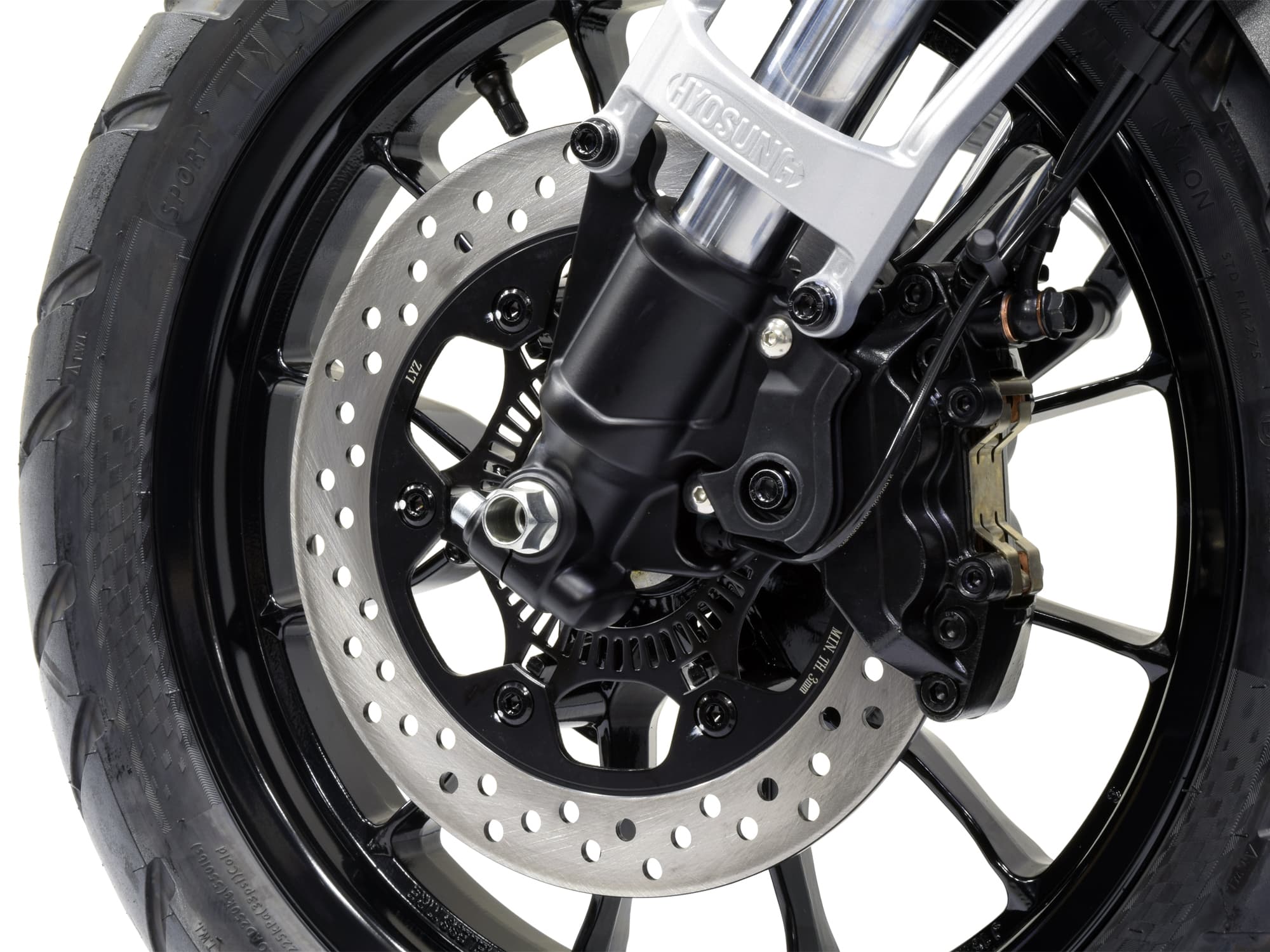 コントロール性に優れた前後ディスクのブレーキシステムには、ABS(アンチロック・ブレーキ―・システム)を標準装備。ABSは、信頼性の高いボッシュ製システムを採用しています。