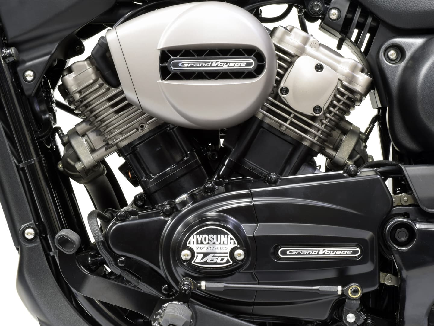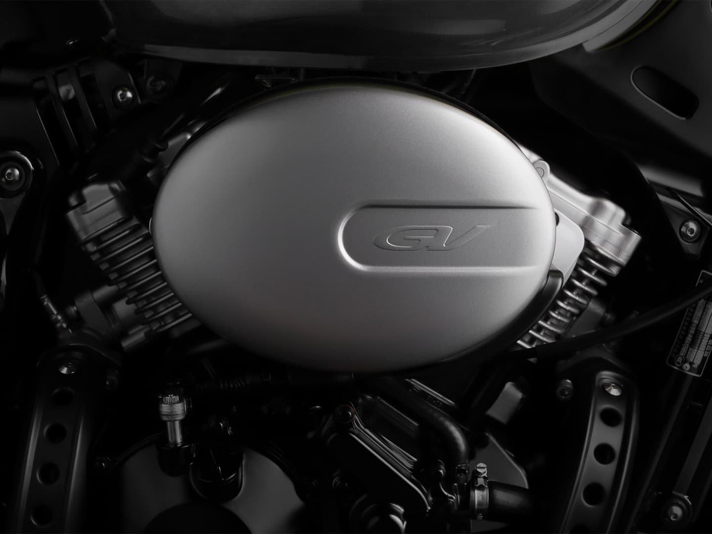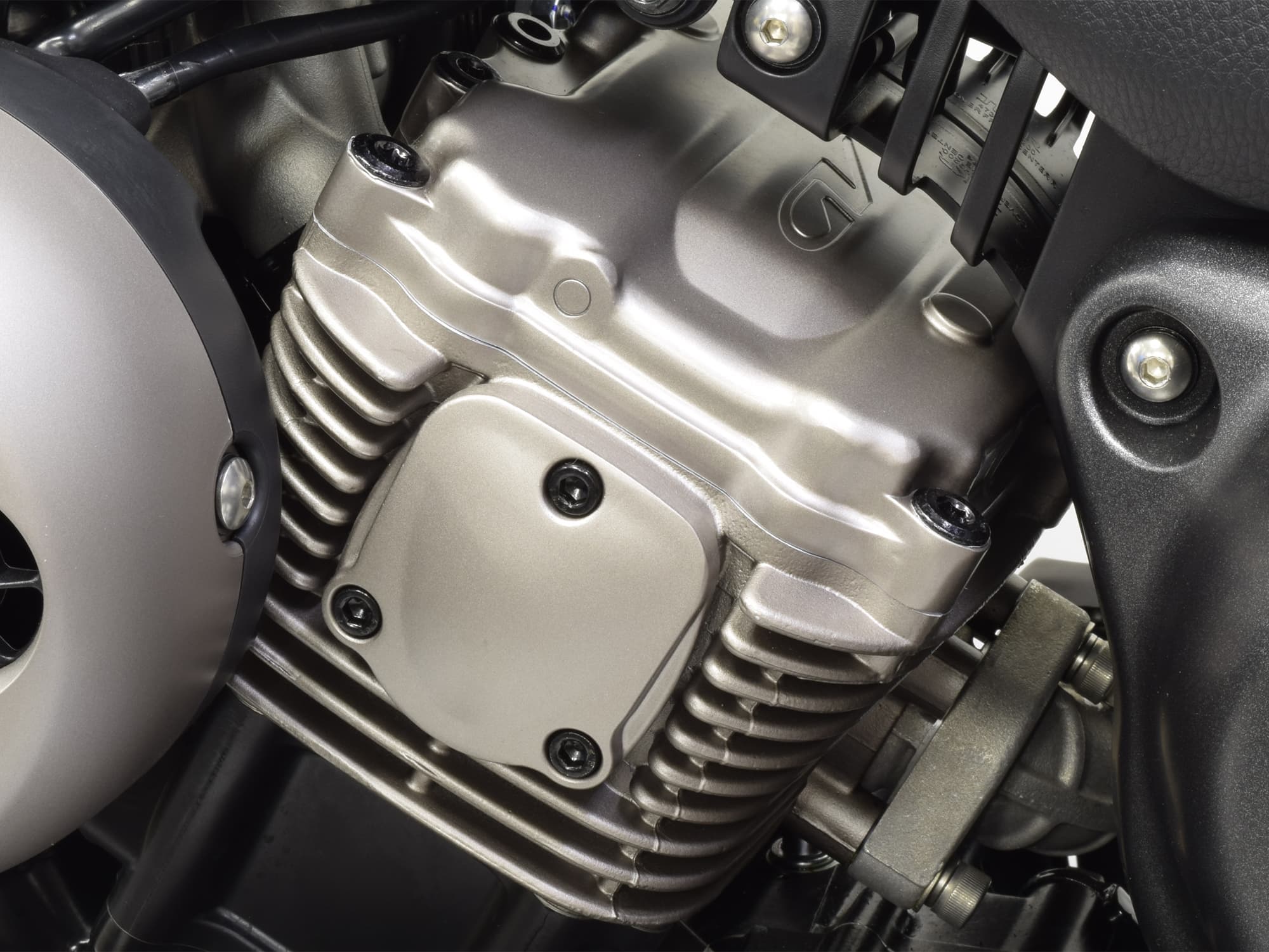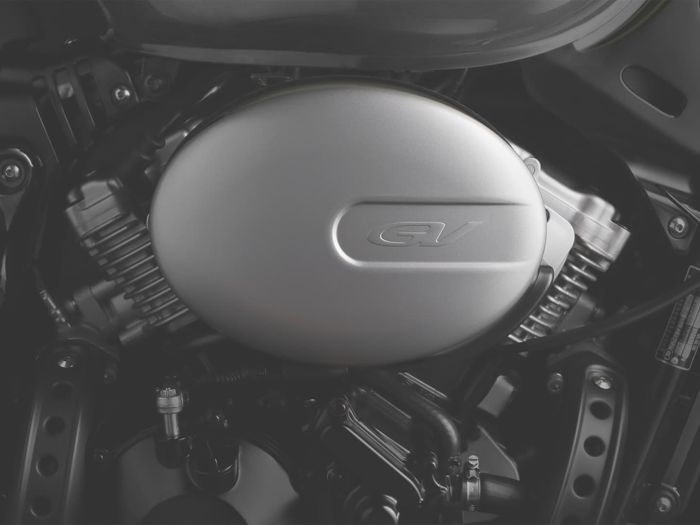 前後シリンダーのバンク角は60度で、Vツインらしい心地良い鼓動感を発生します。バルブシステムにはコンパクトなSOHC4バルブを採用。