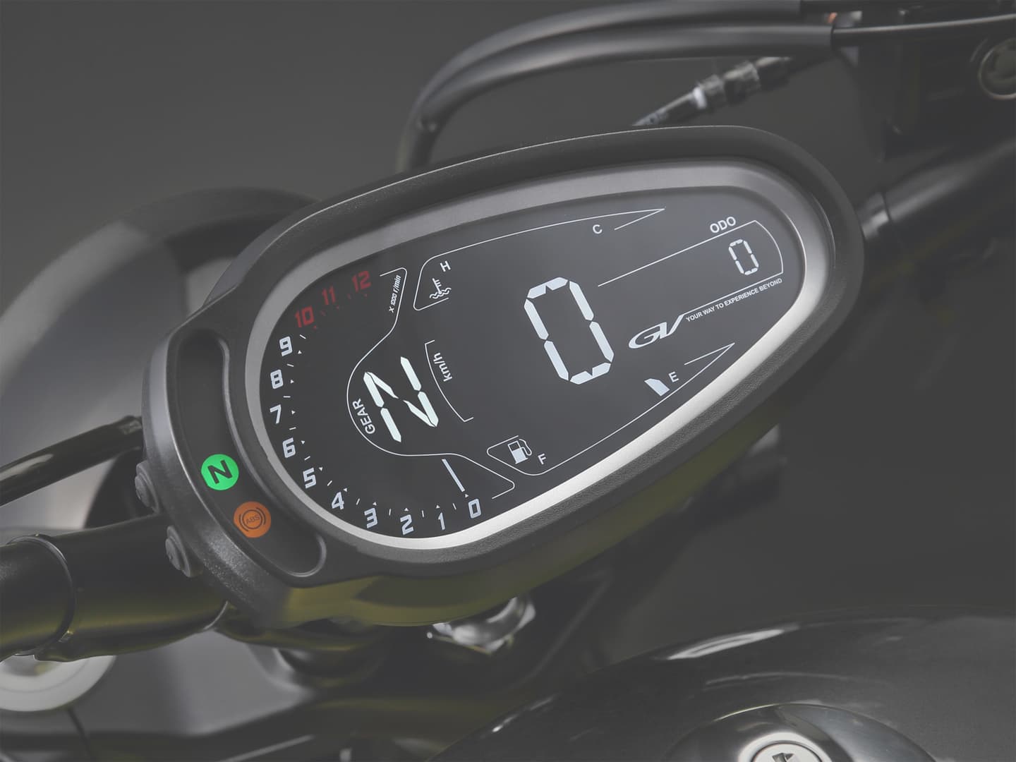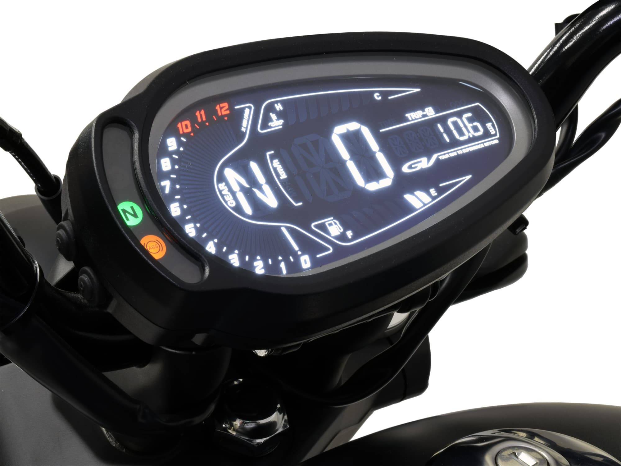 フル液晶メーターには、アナログ調指針表示のタコメーターやギアポジションなどが見易くレイアウトされています。