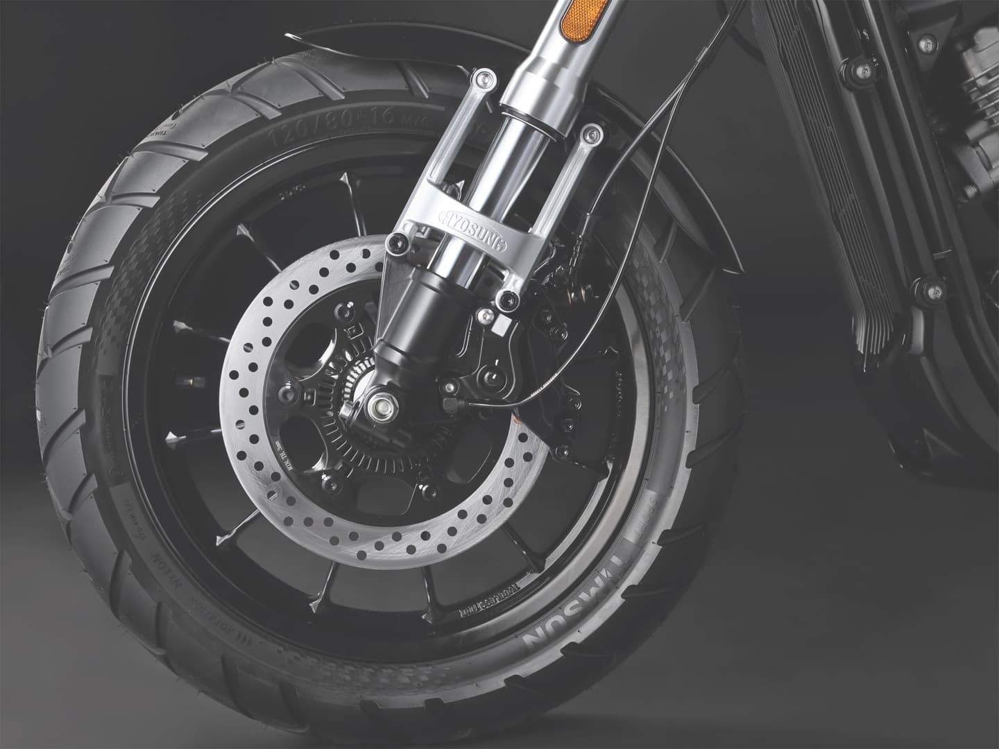EVO専用にセッティングされたフロント倒立フォークによって、剛性と運動性能がアップして、ボバークルーザーにさらなるスポーティーな走りの愉しみが加わりました。