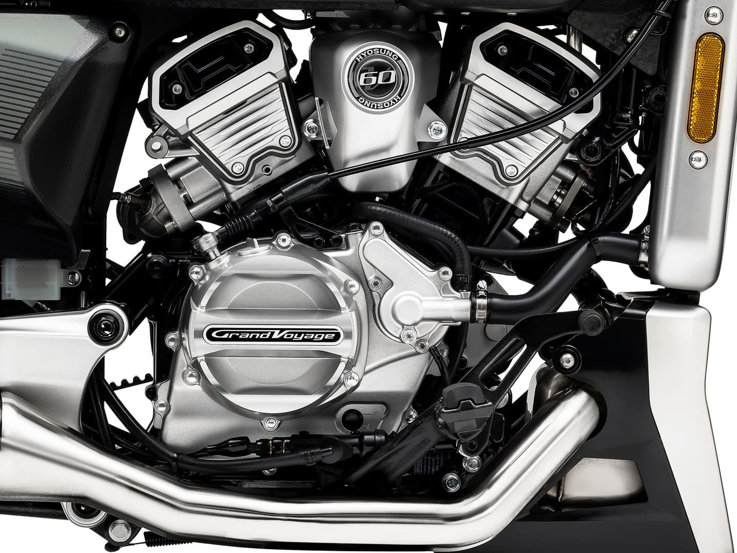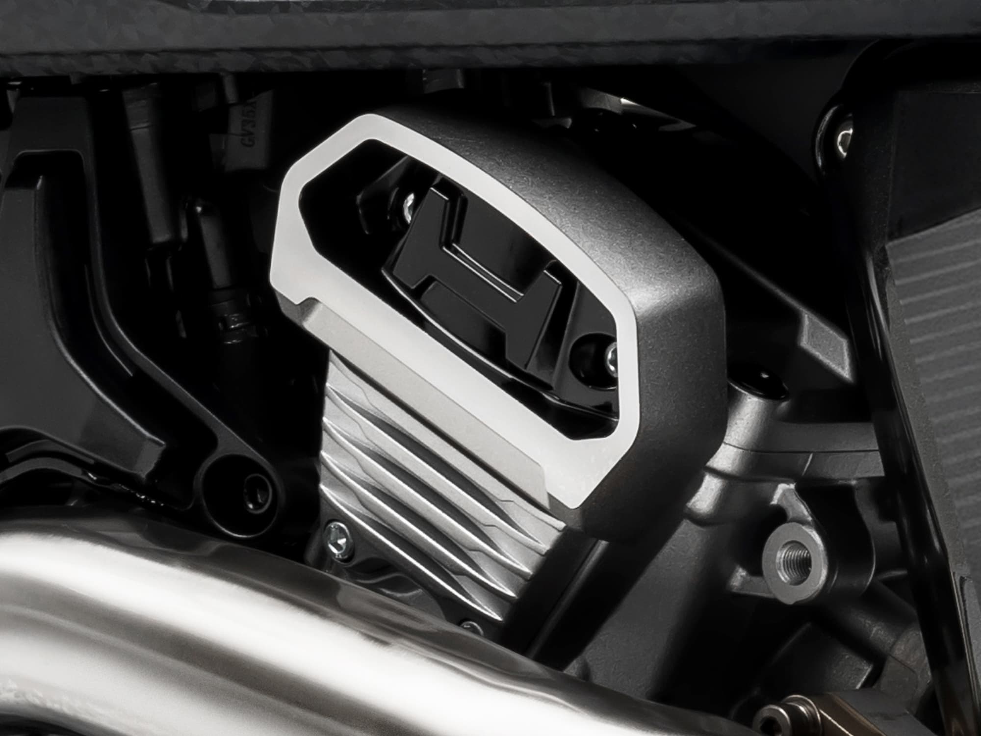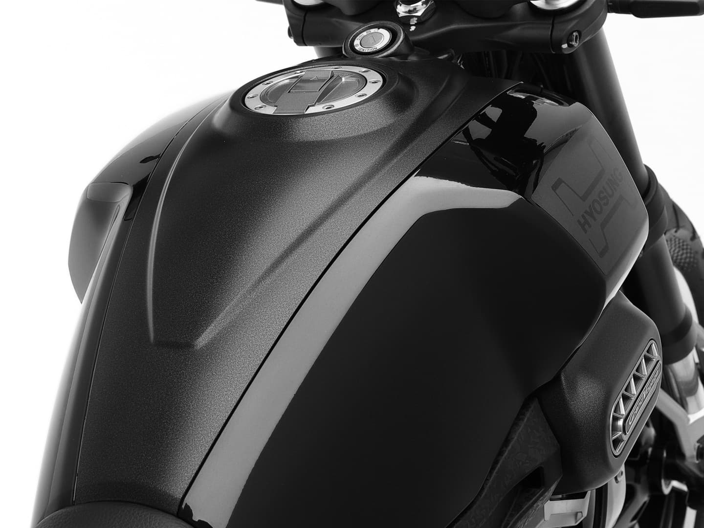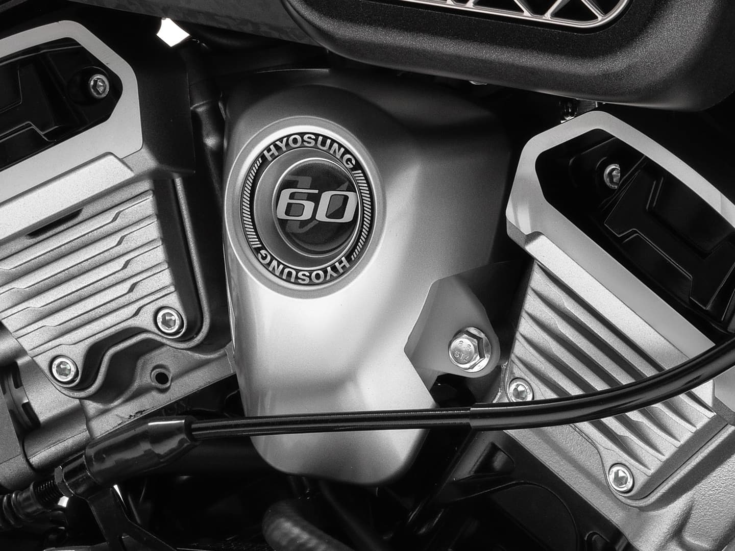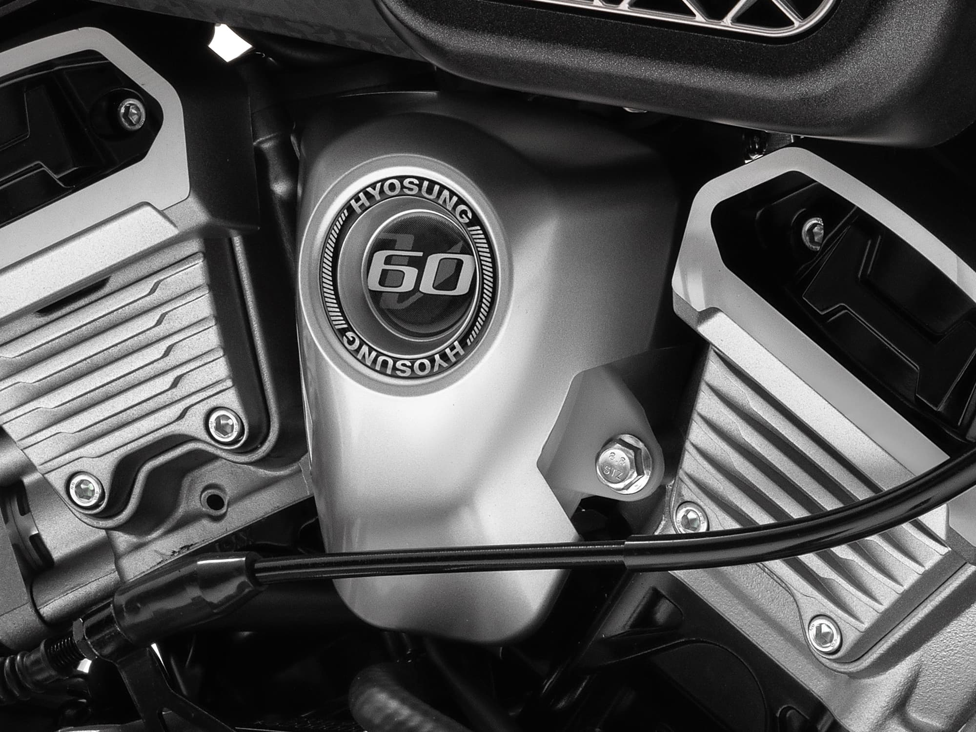 シリンダーヘッドには、ヒョースンのイニシャル「H」をあしらった専用カバーを装備し、メカニカルな美しさと存在感を演出します。