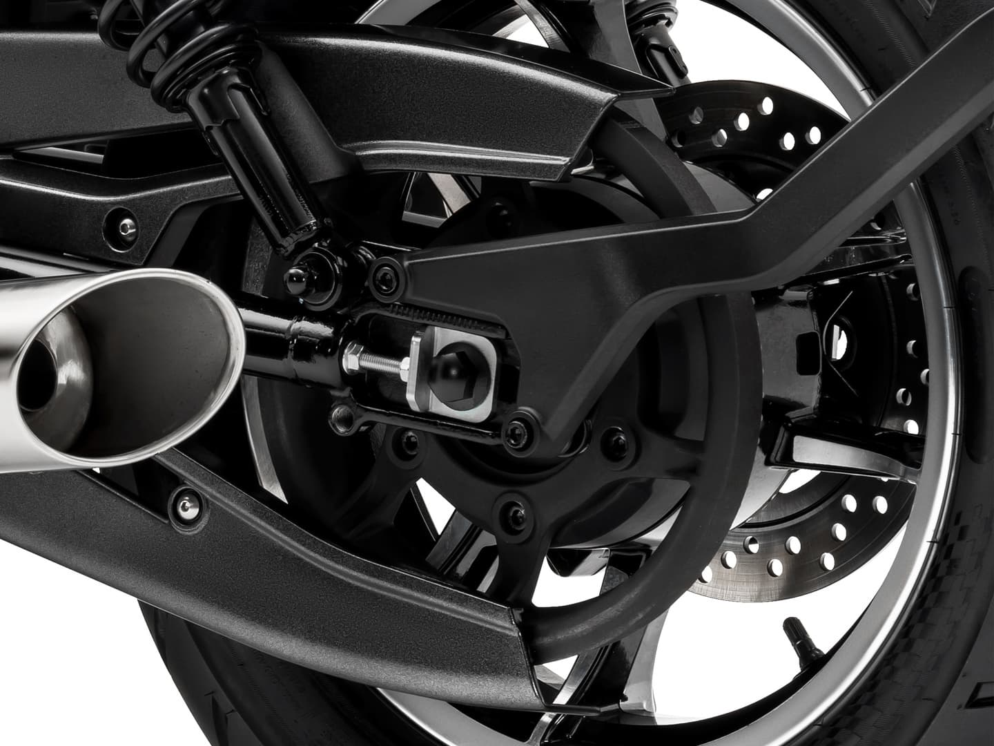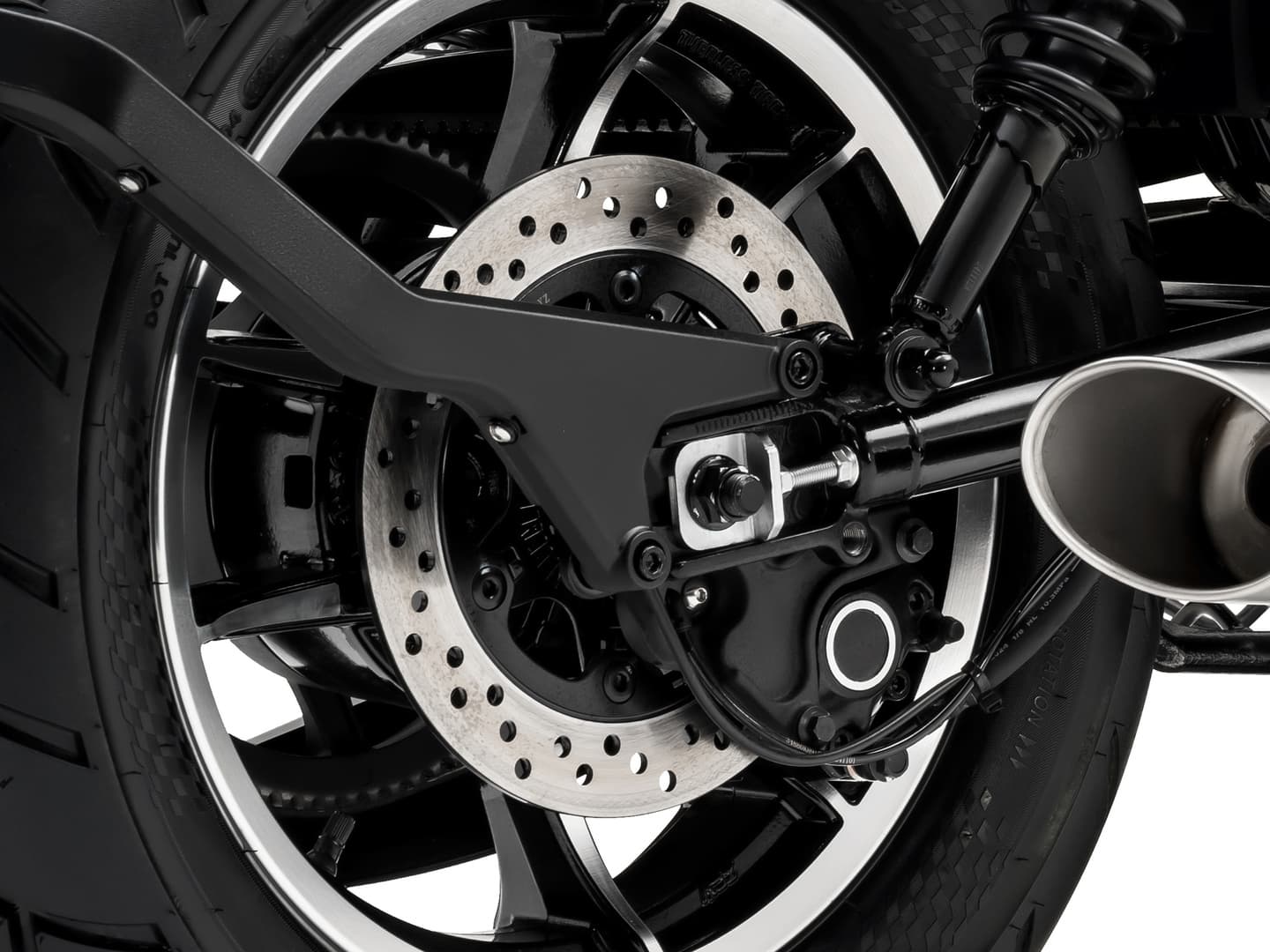 ファイナルドライブにはベルトを採用。ドライブチェーンに比べて圧倒的にノイズが少なく、注油メンテナンスも不要。また、耐久性が高くロングライフといった利点をもち、プレミアムクルーザーに相応しい上質な乗り味を実現しています。