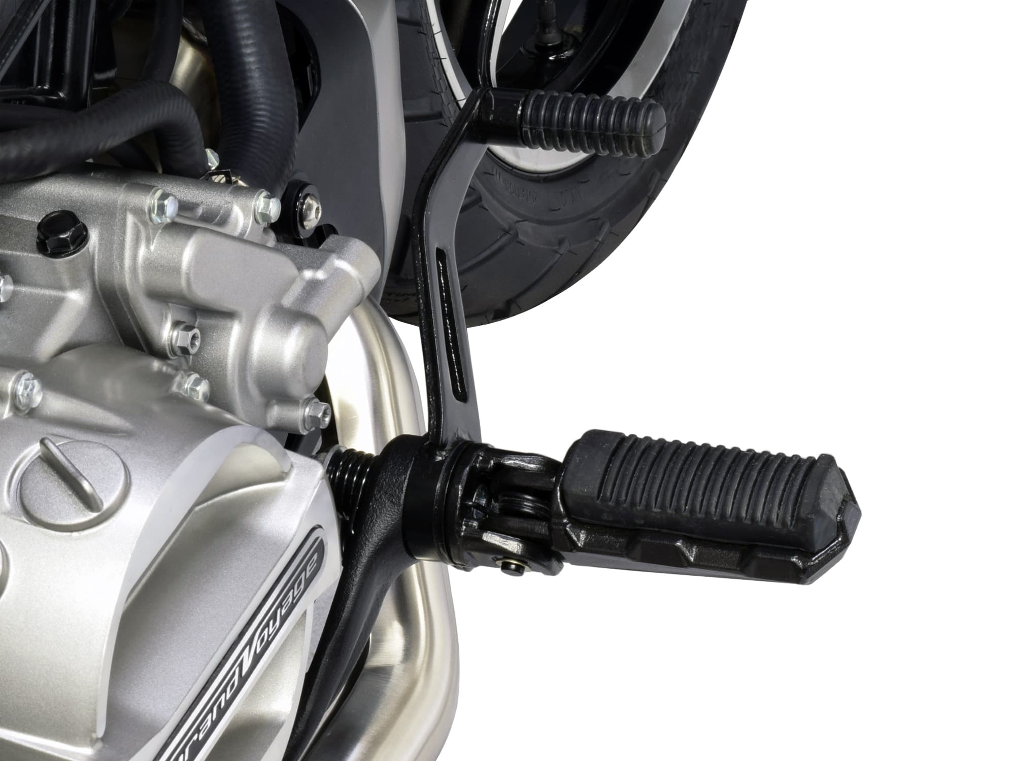 リア(パッセンジャー)フットレストはスマートなプッシュ収納式。実用性とデザイン性を兼備しています。