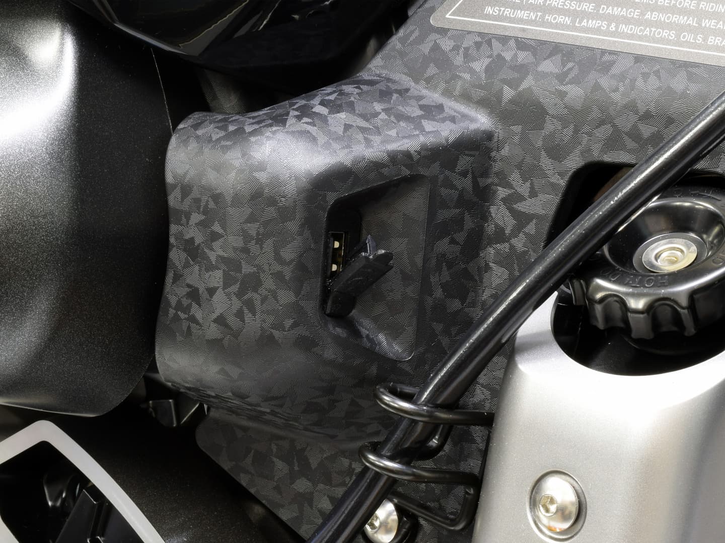 スマートフォン充電やナビゲーション使用に便利なUSB給電ポートをフューエルタンク前側右手に標準装備。ハンドル周りからの配線もしやすい設計です。