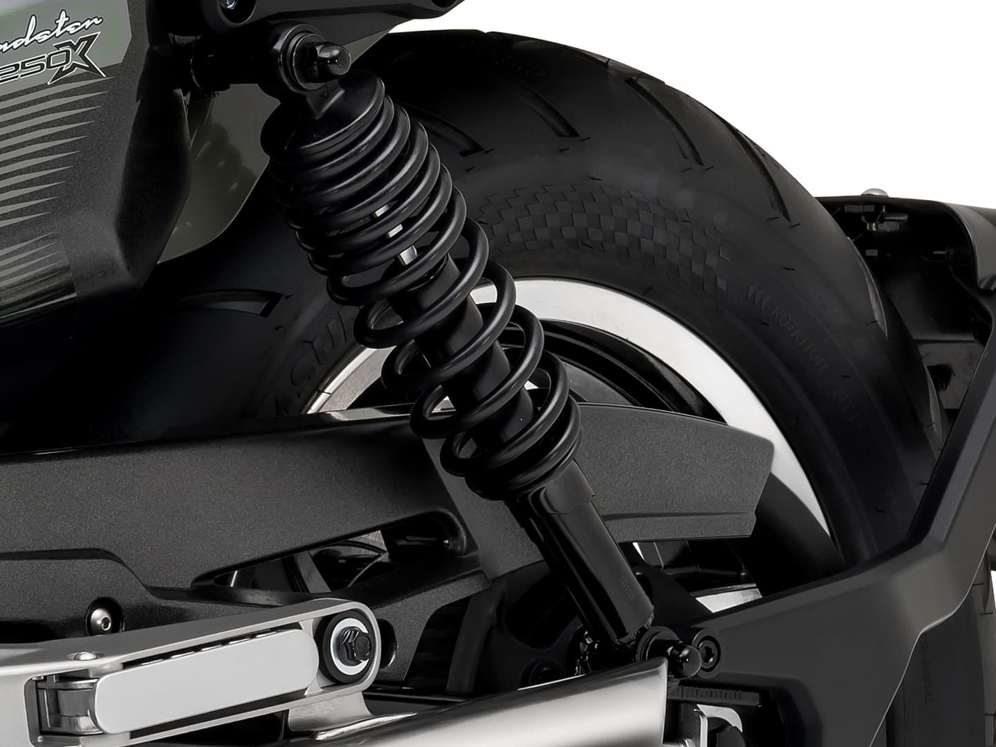 リアフェンダーは、スイングアームに直付けされたからサポートマウントによるショートタイプで、スポーティな後ろ姿を演出します。