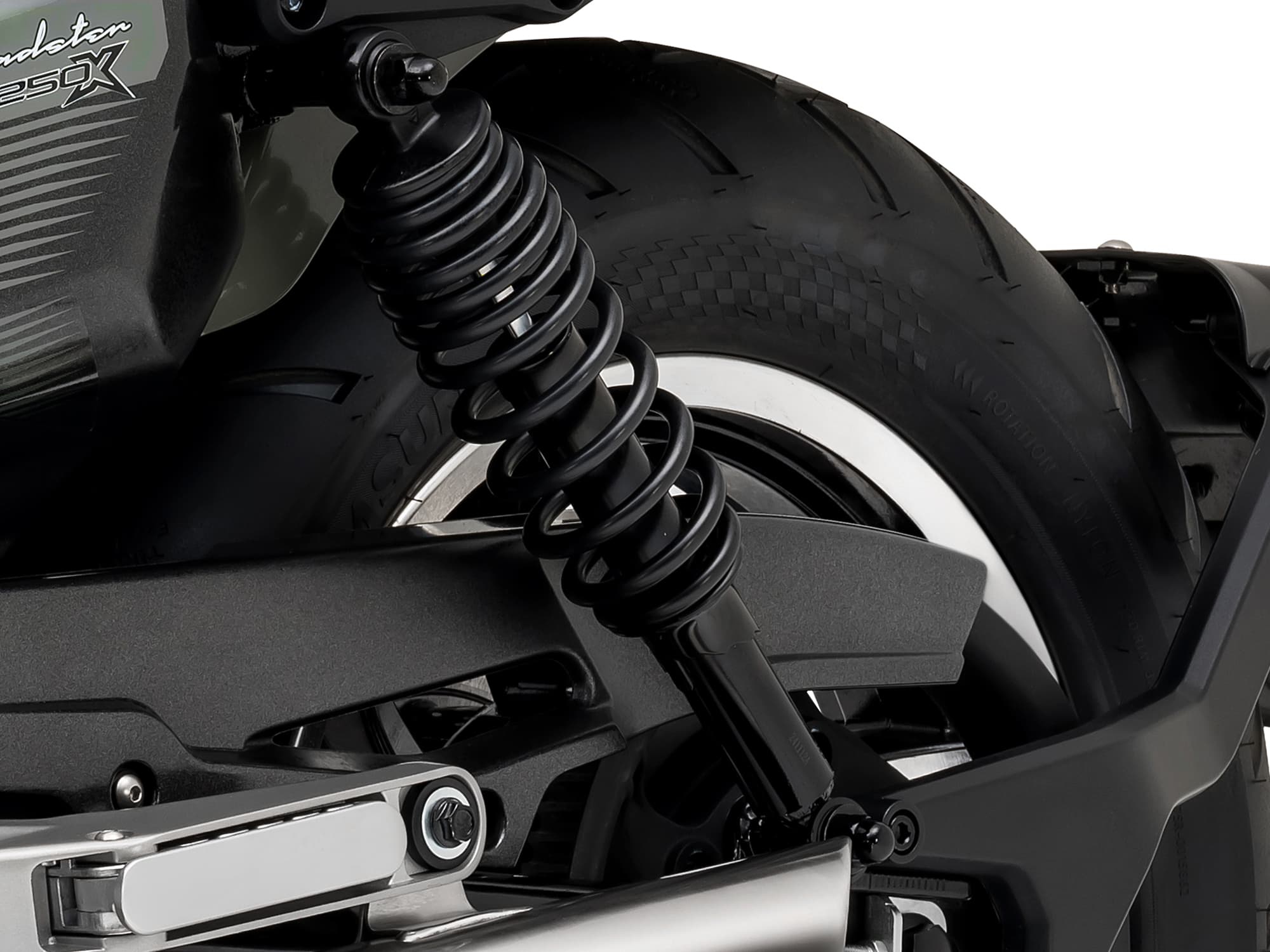 リアサスペンションには、コンベンショナルなツインショックを採用。しっかりとした路面追従性と快適な乗り心地を実現し、クルーザーらしい安定感のある走りを支えます。
