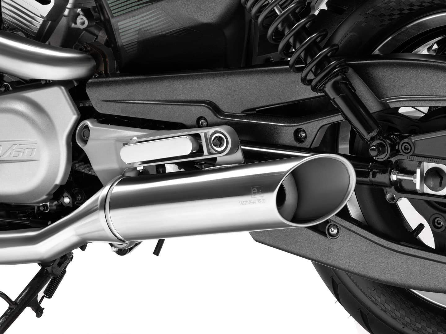 排気効率と環境性能の両立と共に、Vツインビートを効かせた重厚なエキゾーストサウンドを実現しています。