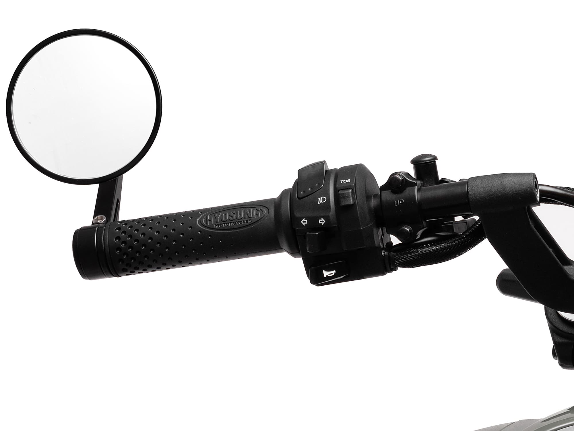 左のハンドルスイッチには、GV250X専用のTCS(トラクションコントロールシステム)ON/OFFスイッチを備えています。
