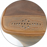 このエイジドレザーは、上質の北欧産ベジタブルタンニン牛革で、独特のしっとりとした手触りが特徴です。非常に丈夫で傷にも強く、且つ雨などへの耐候性にも優れています。