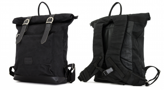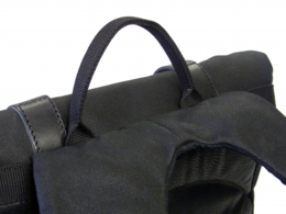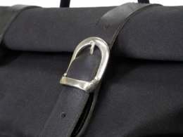 ロールトップのベルトにはタフなカウハイドレザー(牛革)を使用。