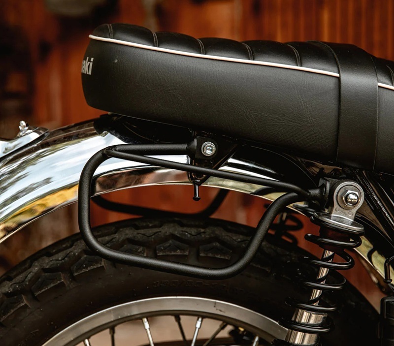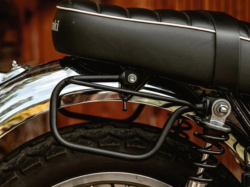 CLICIK-ONサドルバッグ用ブラケット 品 番:BR.1069価 格:18,700円(税抜 17,000円) 適合モデル:KAWASAKI W800 (2019~) 〇 左右セット○ カ ラ ー :サテンブラック(つや消し)○ 素 材 :スチール○ 重 量 :約1kg(片側500g)* 純正サイドグリップを取外して装着します。