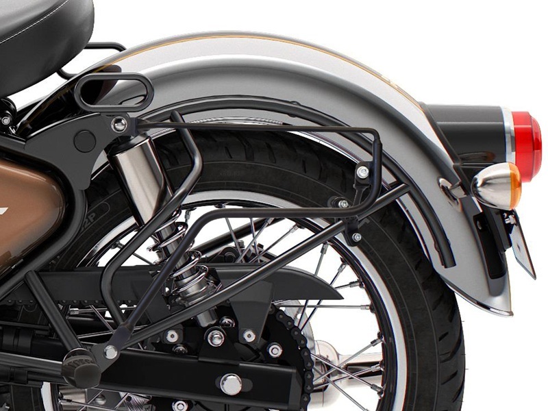 CLICIK-ONサドルバッグ用ブラケット 品 番:BR.1075価 格:20,900円(税抜 19,000円) 適合モデル:ROYAL ENFIELD Classic350 (2021~) Bullet350 (2023~) 〇 左右セット○ カ ラ ー :サテンブラック(つや消し)○ 素 材 :スチール○ 重 量 :約1,240g(片側620g)